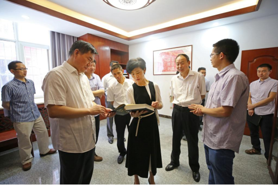 张慧莉一行还赴经济管理学院考察了十堰市发展战略研究院。经济管理学院分党委书记杨立君汇报了十堰市发展战略研究院的建设情况和下一步的发展计划,张慧莉充分肯定了十堰市发展战略研究院的发展,并对它的建设给予了一些指导性的意见。