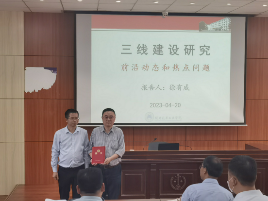 讲座前,黄永昌院长为徐有威教授颁发了客座教授聘书。黄永昌表示,徐有威教授的报告学术性强,深入浅出,通俗易懂,具有很强的理论性和实践性。黄永昌希望青年教师找准学术切入点,抓住学术增长点,以只争朝夕的精神挖好三线建设研究这座学术“金矿”。