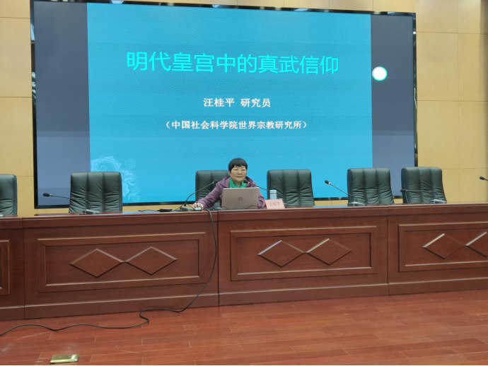 12月1日,中国社会科学院世界宗教所研究员汪桂平应邀为点点taptap官网师生作题为“明代皇宫中的真武信仰”的专题讲座。讲座由人文学院学院副院长安军主持,师生代表130余人到场聆听。