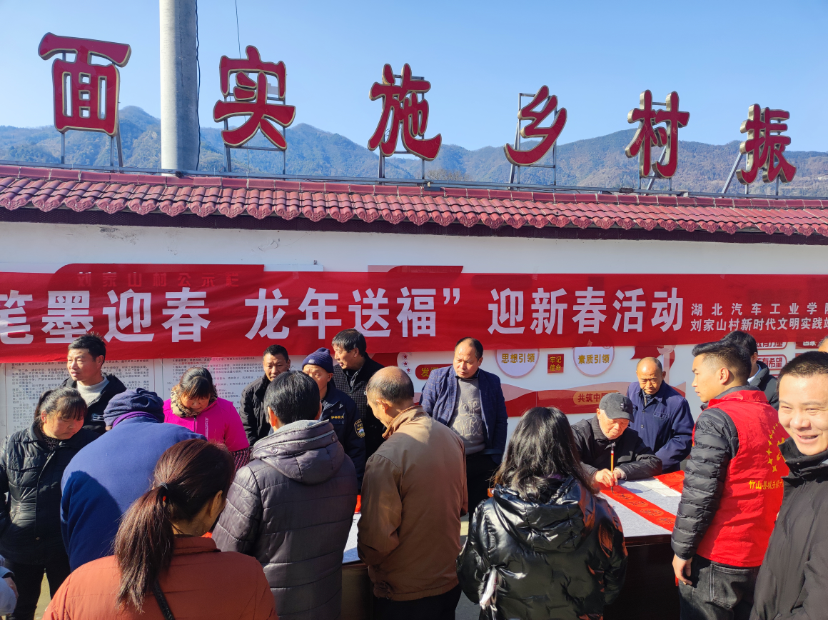 赓续中华文明,推进中华优秀传统文化创造性转化和创新性发展史习近平文化思想的重要内容。在城关镇刘家山村,宣讲团邀请了原十堰市诗书画研究会副会长、十堰市楹联学会顾问曾光洪、曾炜等书法名家,为村民现场书写赠送对联,为即将到来的新春佳节增添浓厚的文化气息。活动现场喜庆热烈,传统文化、传统工艺让年味浓郁十足。
