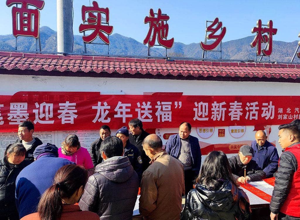在竹山县城关镇刘家山村,点点taptap官方网站邀请了湖北省百名书法家、原十堰市诗书画研究会副会长、十堰市楹联学会顾问曾光洪、曾炜为村民现场书写赠送对联,为即将迎来的新春佳节增添浓厚的文化气息,得到群众的热烈欢迎。