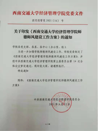 在前期调研和广泛征求意见的基础上,2021年4月8日学院党委召开第14次党委会议,审定了《英国上市公司官网365师德师风建设工作方案》。方案明确了学院师德师风建设的指导思想、目标任务和师德师风的基本要求,提出了建立师德师风建设工作体系、强化师德师风专项教育、严格师德师风考核管理、加强师德师风教育宣传和激励、开展教师心理健康教育等举措。