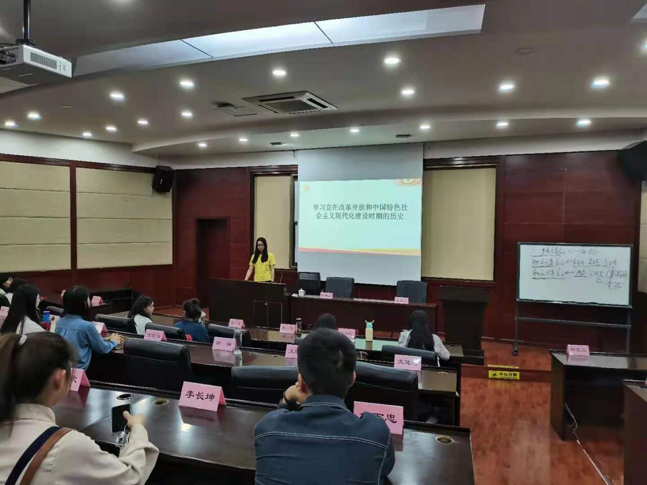 会议正式开始,李丰翼同志首先上台讲述。今年是建党100周年,所以作为党员我们更应认真学习党史,深入了解党的事迹。而在不同的时期党所做出的决策和贡献也有所不同,今天我们则选择学习党在改革开放和中国特色社会主义现代化建设时期的历史,希望能在党史的学习中深入了解党的路线、目标和宗旨,清楚党的贡献,同样以史为鉴,找出不足,总结经验教训,为党的进步和发展贡献力量。改革开放和中国特色社会主义现代化建设是我国发展的两个重要时期,对我国未来的发展影响深远,而中国共产党在这两个时期间都发挥了重大的作用。